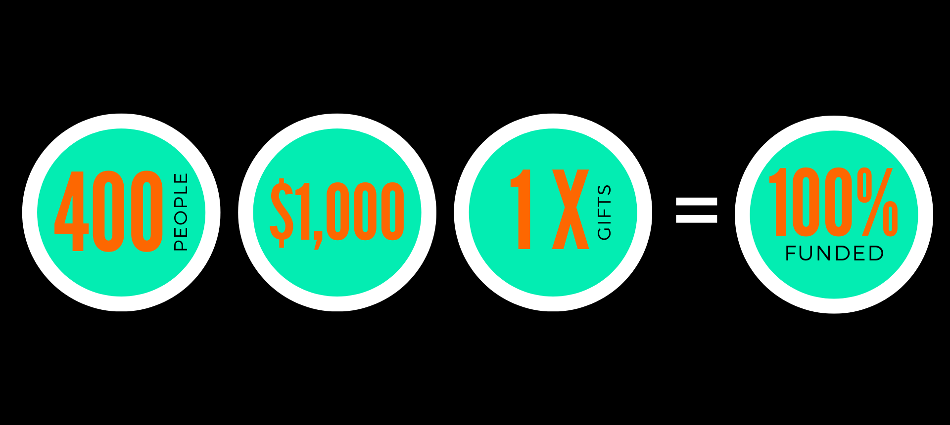 I truly believe God can do this! Only 400 people giving $1,000 and we'll there! Would you seek God and see if he would lead you to represent 1 or even more of those people? Whatever God leads you to give I know he will use your generosity and sacrifice to advance his kingdom fuel the mission. We are better together!